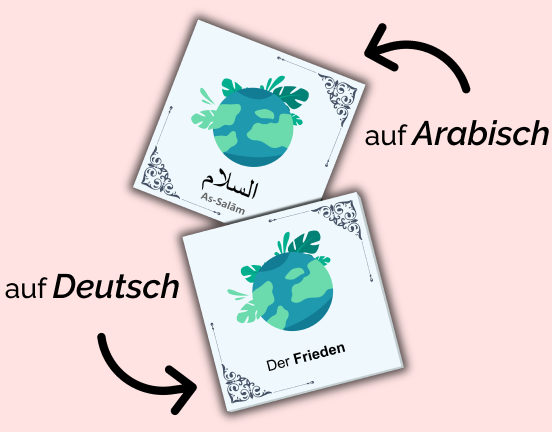 Ein Memospiel enthält insgesamt 50 Karten, jeweils 25 auf deutsch und arabisch. Somit lernst du mit einem Spiel 25 Namen.